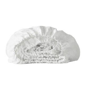 Experience a blissful night’s sleep with this ivory linen queen fitted sheet. Crafted from premium quality linen that is known for its moisture wicking properties to keep you cool and comfortable, these sheets are a luxury but so worth it. They are breathable, have a soft thick texture that will get softer over time, and are wrinkle resistant (not wrinkle free). Rest easier and longer with this high-quality sheeting. 16-inch H x 80-inch W x 60-inch D