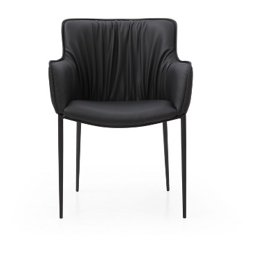 HomeRoots Light Gray and Black Faux Leather and Metal Dining Arm Chair