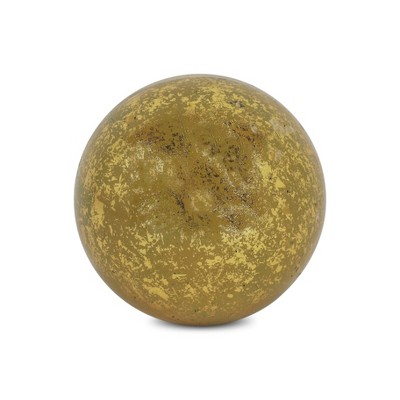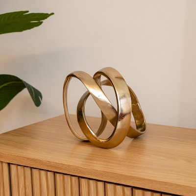 Add a touch of contemporary design to any space in your home with this Petite Gold Metal Orb Decorative Sculpture. This piece is made from metal and has a shiny gold color. The orb is made form multiple oval shapes that intersect at different points to create a circular shape. This unique piece will look great grouped with other decor pieces you may have on your bookshelf or your coffee table, or you can use it as an accent piece on its own. 8.75" H x 8.75" W x 8.75" D