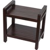 This multi functional teak bench provides a combination of comfort and elegance to your shower, bathroom, patio, or living area. The arms are designed to be sturdy, and steady to provide that added support and assistance when lifting out of the seat. They also provide a handy surface for hanging towels on, and can double as a towel rack once you are out of the shower. The teak stool is 20" in length by 13" width, by 18" high. An included utility shelf provides additional storage and easy access for your toiletries, or other essential items. It provides the ability for this teak furniture to be used outdoors as well as indoors.