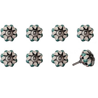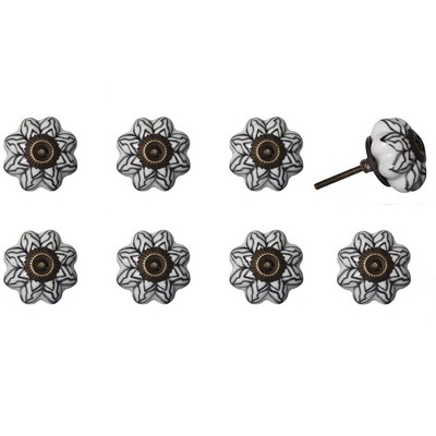 Transform your space quickly and easily with this set of eight black and white ceramic and metal drawer pull knobs. Improve the look of your old boring or builder grade furniture and cabinetry with these high quality round knob traditional style knobs. Hand-painted by talented artisans, these knobs will add a touch of artisanal design. 1.5-inch h x 1.5-inch w x 1.5-inch d.