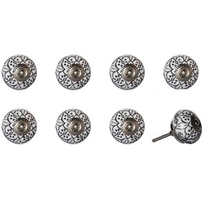 - Knobs are hand painted by skilled artisans with a black and white flower-theme.