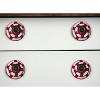 Transform your space quickly and easily with this set of eight white and red ceramic and metal drawer pull knobs. A favorite of designers and diyer's alike, these high quality round knob traditional style knobs are versatile in use and will change up the look of your existing furniture and cabinetry in a snap. Hand-painted by talented artisans, these knobs will add a touch of artisanal design. 1.5-inch h x 1.5-inch w x 1.5-inch d.