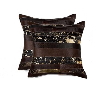 Add an air of fashion to your room and rejuvenate the space with this cute and fashionable set of two 18-inch chocolate cowhide throw pillows. This luxuriously soft pillow set is expertly made of high grade, genuine cowhide in a chocolate coloration. Elegantly chic, these pillows are the epitome of luxury. Super soft and built to hold its shape, this cotton-filled pillow is a great option. Decorative pillows are a great way to change up the look and feel of your space easily and quickly. Decorative throw pillows not only add color and dimension to your space but can be comfy and supportive when you are lounging and cuddling as well. 18-inch h x 18-inch w x 5-inch d.