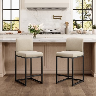 HomeRoots Set of Two 27" Brown and Black Faux Leather and Metal Low Back Counter Height Bar Chairs