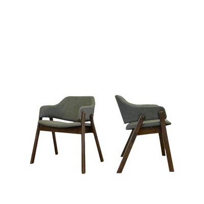 Make your dining room stand out with the set of two gray and black faux leather and wood dining side chairs. These stylish armless chairs can easily fit around the table, but can also be used as an accent in living room, office, or bedroom. A solid and supportive full back, with channel gives this chair its unique style. Dining chairs are a great way to compliment your kitchen or dining room but can also be used in the foyer, hallway, or any room you might need extra seating. 33.30-inch h x 21.00-inch w x 24.40-inch d.