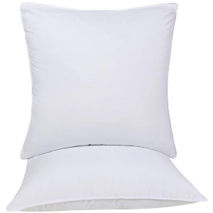 Set of two microfiber down alternative medium hypoallergenic European size bed pillows offer versatile support for side, back, and stomach sleepers. Crafted with a medium comfort level, these pillows feature a soft down alternative fill for a cozy sleeping experience. The microfiber cover adds a touch of elegance while ensuring durability and comfort. Easy to maintain, these pillows are machine washable for hassle-free cleaning. This set includes two European size pillows which can be used as bed pillows or decorative pillow cover inserts. Enjoy the hypoallergenic benefits that make these pillows ideal for allergy sufferers. 25.98-inch h x 25.98-inch w x 6-inch d.