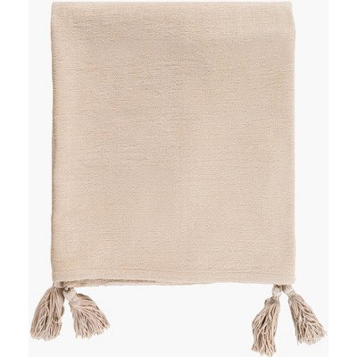 - Features a woven texture and tassles.