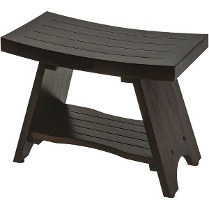 HomeRoots Teak Rectangular Shower Bench With Shelf In Brown Finish