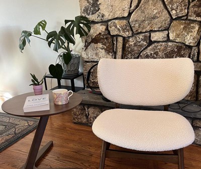 This 2-piece accent table and chair set offers a harmonious blend of mid-century modern charm and cozy elegance. The set features a curved accent chair, upholstered in plush, boucle-textured fabric, providing both comfort and style with its smooth contours and walnut-finished wooden frame. Paired with the chair is a sleek round accent table, also finished in rich walnut, with an artistic angled base that adds visual intrigue. Perfect for a reading nook or relaxing corner, this set provides a stylish and functional duo for your living space, bringing warmth and modern design together in one perfect pairing.