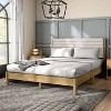 Slumber in style with this enchanting bed, where comfort meets artistry in a woodwork masterpiece. Boasting a robust rubberwood frame, known for enduring beauty, and a choice of Natural Wood or Dark Walnut finishes, this bed seamlessly adapts to any bedroom theme. With poplar wood slats, bid adieu to box springs and hello to firm support under your favorite mattress. The headboard is a statement of luxury, with boucle horizontal channeling that offers a soft, ridged backdrop perfect for night-time readers or lazy Sunday lounging. Choose your finish and transform your bedroom into a sanctuary of whimsical dreams and restful nights with this bed that stands as the heart of your personal retreat.