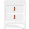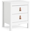 Enhance your bedroom or small space with the 2 Drawer Nightstand. It features a unique modern-traditional design that's ideal for bedside storage. The two drawers are backed with metal drawer glides and comes with two types of handles-grey knobs and brown leather handles-to customize the look. The Nightstand has a durable foil surface that is easy to clean. Combine with other pieces from the collection to complete your living space