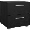 Sleek and slender bedside storage. 2 Drawer Nightstand keeps bedside necessities within reach. Helping to orchestrate a clutter free room, this nightstand takes up minimal space and meshes with a variety of decor styles. Streamlined hardware and round feet give the line its simple chic feel. Standing strong with metal drawer liners and an easy to clean foil surface the nightstand will be a productive and durable piece in your collection. Pair this 2 Drawer Nightstand with other items from the collection to complete the look
