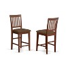 This stylish Vernon 3 piece counter height dining set is perfect for smaller spaces, offering both functionality and a touch of elegance. The set includes a square kitchen table and two matching counter height stools, ideal for casual dining or entertaining guests. Crafted with a rich mahogany finish, this set brings warmth and sophistication to any kitchen or dining area. The smooth, tapered legs of the stools complement the square tabletop, creating a cohesive and visually appealing design. This well-designed set provides comfortable seating and a practical gathering space for everyday use.
