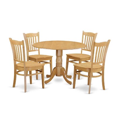 HomeStock Round Kitchen Table Set Oak Wood Finish Modern Style