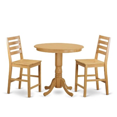 HomeStock 3-Pc Natural Oak Finish Solid Wood Top - Dining Room Set - Seats 4
