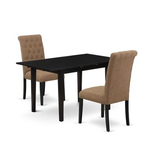 HomeStock 3-Piece Black Finish Rectangular Solid Wood Top With Butterfly Leaf Dining Table Set