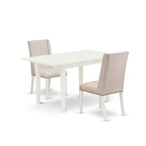 HomeStock 3-Piece Linen White Finish Rectangular Solid Wood Top with Butterfly Leaf Dining Table Set