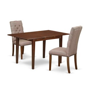 HomeStock 3-Piece Mahogany Finish Rectangular Solid Wood Top With Butterfly Leaf Dining Table Set