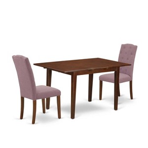 HomeStock 3-Piece Mahogany Finish Rectangular Solid Wood Top with Butterfly Leaf Dining Table Set