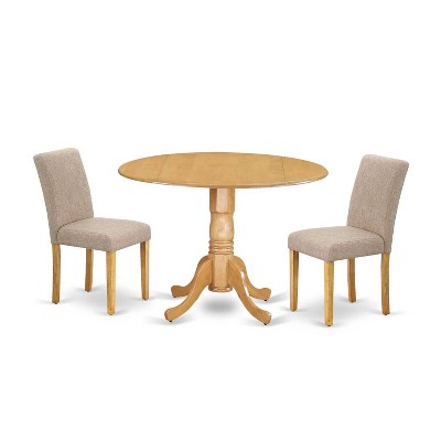 HomeStock 3-Piece Round Natural Oak Finish Solid Wood Top Dining Table with 2-Parson Chairs with Drop Leaf