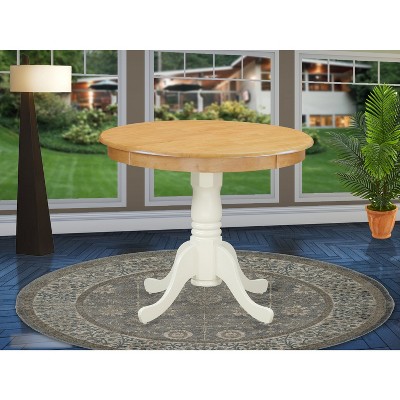 Enhance your dining area with the HomeStock Antique Modern Kitchen Table, a stylish and durable centerpiece. This round dining table features a sturdy pedestal base constructed from Asian solid wood, ensuring stability and a timeless aesthetic. The table top showcases a beautiful oak-colored finish, adding warmth and sophistication to any dining room. Perfectly sized at 36x36 inches, this mid-century inspired table is ideal for smaller spaces or intimate gatherings, offering ample room for meals and conversation. Its sleek design complements various interior styles, while the robust construction guarantees a secure and enjoyable dining experience.