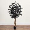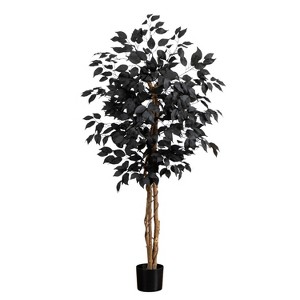 A crowd-pleasing, customer favorite is back and with a vengence, meet the artificial Halloween black ficus tree. Inspired by the ficus, a tree that gets the job done without over bearing a space, now comes in a black finish to celebrate the holidays. Crafted from high-quality materials featuring a natural trunk, feel free to bend the branches to shape. Standing 4-Ft from a nursery pot, DIY and add to planter of your choice. Accent with some lights, spiders and pumpkins for a decorative touch.