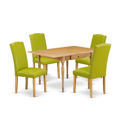 HomeStock 5-Pc Mahogany Finish Solid Wood Top - Rectangular Dining Room Set with Dropleaf - Seats 4
