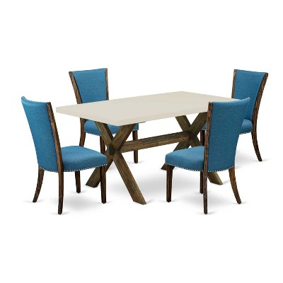 HomeStock 5-Piece Distressed Jacobean Finish Solid Wood Top Dining Table with 4 Parson Chair