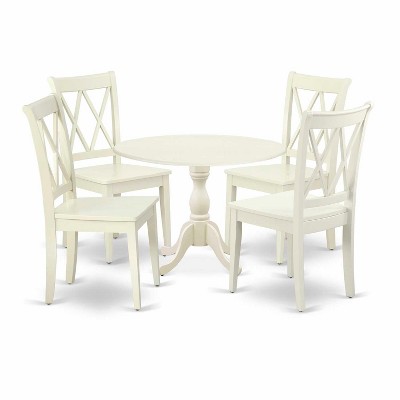 HomeStock 5-Piece Linen White Finish Solid Wood Top Dining table with 4 Chairs with Drop Leaf Lattice Back