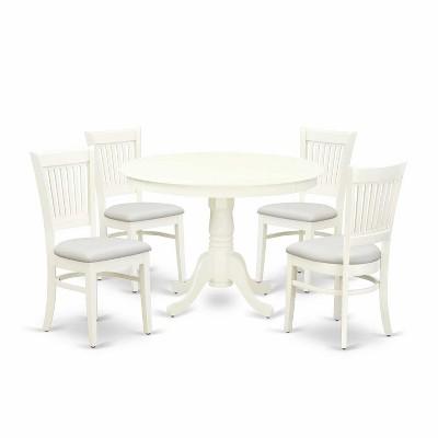 HomeStock 5-Piece Linen White Finish Solid Wood Top Dining table with 4 Chairs with Slat Back - 1 of 4