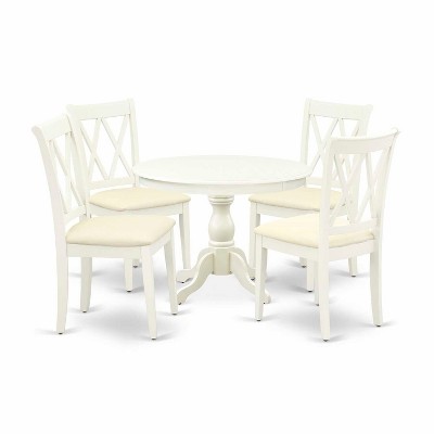 HomeStock 5-Piece Linen White Finish Solid Wood Top Dining table with 4 Chairs - 1 of 4