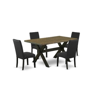 HomeStock 5-Piece Natural Oak Finish Solid Wood Top Dining table with 4 Chairs