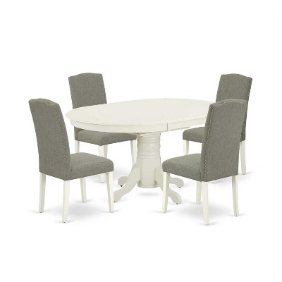 HomeStock 5-Piece Oval Linen White Finish Solid Wood Top Dining Table with 4 Parson Chair with Butterfly Leaf