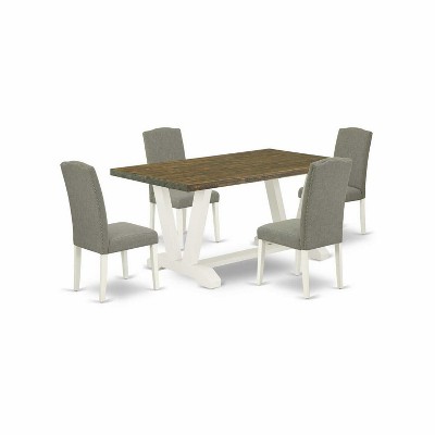HomeStock 5-Piece Rectangle Distressed Jacobean Finish Solid Wood Top Dining table with 4 Chairs - 1 of 4