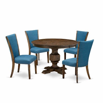 HomeStock 5-Piece Round Distressed Jacobean Finish Solid Wood Top Dining Table with 4 Parson Chair - 1 of 4