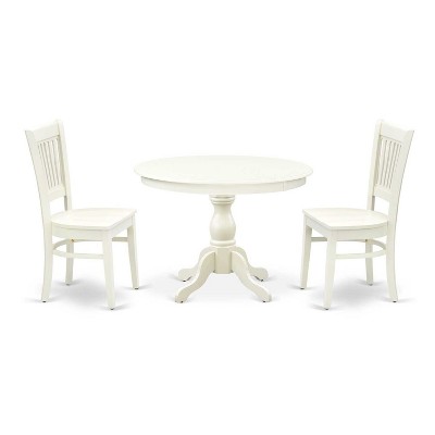 HomeStock 5-Piece Round Linen White Finish Solid Wood Top Dining table with 4 Chairs with Slat Back - 1 of 4