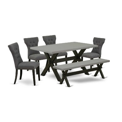 HomeStock 6-Pc Rectangle Natural Oak Finish Solid Wood Top Dining Table with 1-Bench, 4-Chairs