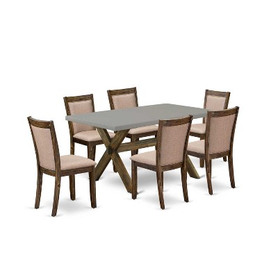 HomeStock 7-Piece Distressed Jacobean Finish Solid Wood Top Dining Table with 6-Chairs