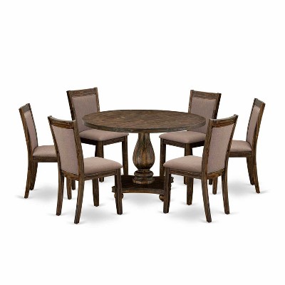 HomeStock 7-Piece Distressed Jacobean Finish Solid Wood Top Dining Table with 6-Parson Chairs