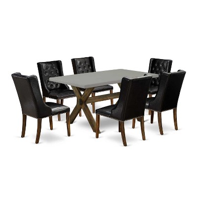 HomeStock 7-Piece Rectangle Distressed Jacobean Finish Solid Wood Top Dining Table with 6-Chairs