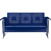 Glide back into lazy summer afternoons with the Bates Outdoor Sofa Glider. This vintage-style sofa comes in a variety of vibrant colors, offering a fun outdoor lounging experience. The back features a unique basket weave design that allows air to circulate, and the base has a smooth gliding mechanism for relaxing in comfort. Made of durable steel, this glider has a powder-coated finish that resists rust and sun fade. The Bates Sofa Glider is sure to add a dash of retro fun to your porch or patio.