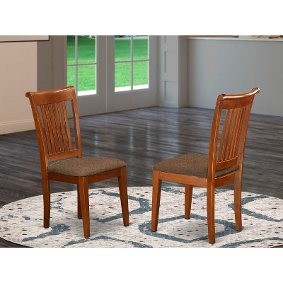 These dining chair set features comfortable Microfiber Upholstery seat and Saddle brown finish.