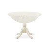 - The table top and pedestal legs showcase a sophisticated linen white hue, while the upholstered chairs feature a light beige linen fabric seat and linen white parson chair legs, creating a cohesive and stylish look for any setting.
