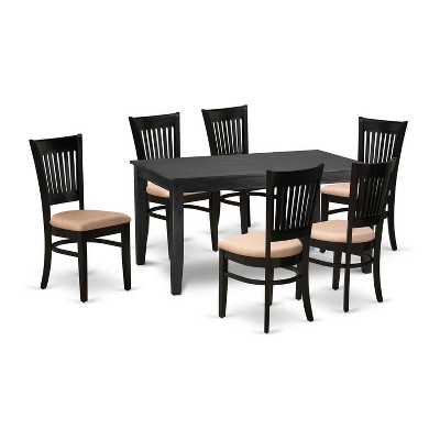Enhance your dining space with the HomeStock Nino7-BCH-W 7 Piece Kitchen Table Set, a beautiful addition to any home. This set features a rectangular dining table with a convenient butterfly leaf, perfect for accommodating both intimate dinners and larger gatherings. Crafted from solid Asian hardwood, the table and six accompanying chairs offer lasting durability and a timeless appeal. The Black and Cherry finish adds a touch of sophistication, complementing a variety of decor styles. Designed for comfort and style, this set provides a welcoming and elegant setting for shared meals and memorable moments with family and friends.