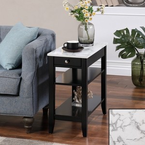 Classic yet simple in style, the 1 Drawer Chairside End Table with Shelves brings interior design to a new level. Available in multiple two-toned finishes, this transitional versatile chairside table is sure to upgrade any living space. The classic design of this beautiful piece also includes 3 spacious tiers of shelving for decor or family room necessities. A smooth nickel drawer knob on the pull-out drawer allows for easy access to entertainment essentials. Built from manufactured wood and finished with a detailed woodgrain birch veneer, this unit is sure to stand the test of time. Shop and style your favorite living space with beautiful coordinating pieces from the Collection , each sold separately.