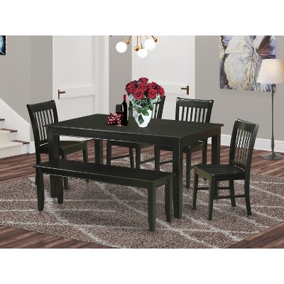 • Includes: This 6-Piece Dudley rectangular dining Dining room table set includes one table size 36in x 60in and 4 wood seat chairs plus one 52 in long dining bench with wood seat.