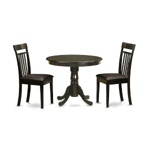 • This delightful 3 piece dinette set includes a round dining table and two faux leather seat dining room chairs, all finished in a beautiful Cappuccino hue to complement any kitchen or dining room decor.