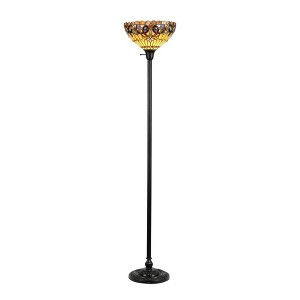 This stunning torchiere floor lamp from HomeStock brings a touch of Victorian elegance to any room. Handcrafted with pure stained glass, each piece is carefully positioned to create a beautiful and intricate design, highlighted by sparkling crystal gems. The exquisite details and warm glow create a serene and inviting atmosphere, perfect for adding a touch of sophistication to your living space or bedroom. Expertly crafted with top quality materials, this floor lamp is built to last and provide years of beautiful illumination.
