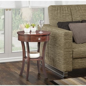 The End Table has a charming aesthetic that will transform your space. Featuring a drawer for concealed storage with a classic silver finish drawer pull that complements the already sleek design. The narrow bottom shelf provides additional display area while pulling together the look with elegantly curved legs. Crafted from solid wood this piece will provide durability and quickly become a staple in your home. Available in multiple finishes the End Table from will easily accompany any new or existing decor.